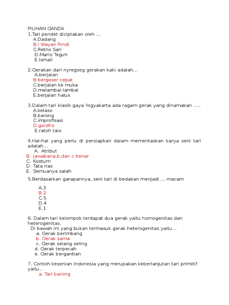 Tulis namamu di sudut kanan atas 2. Tarian putri bekhusek bercerita tentang … a. Seni tari yang tidak mementingkan keindahan melainkan untuk kepuasan individu sehingga bersifat spontanitas adalah 46. Soal tentang seni tari ini meskipun dikhususkan untuk siswa sma/sma, namun bisa digunakan untuk latihan soal seni budaya smp/mts.