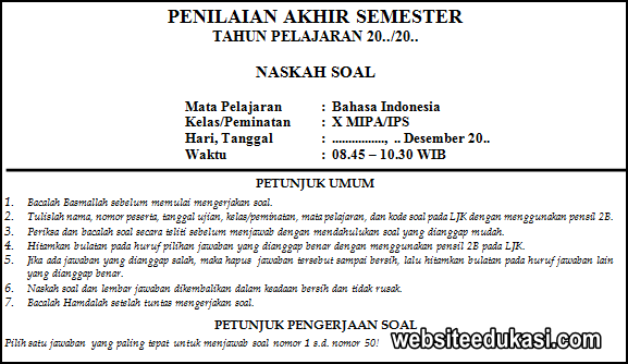 39+ Contoh Soal Bahasa Indonesia Kelas 10 Semester 1. Soal ujian akhir semester (uas) bahasa indonesia kelas x sma/smk semester 1 dan jawabannya. Pembelajaran bahasa indonesia dalam kurikulum 2013 telah diubah secara mendasar, berbasis teks.